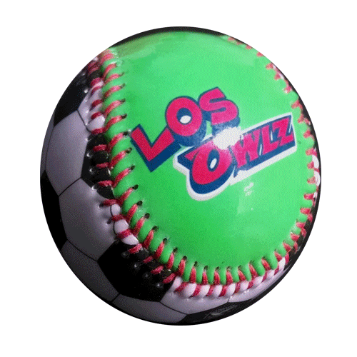 Novelty baseball to commemorate Los Owlz. Soccer ball design on the baseball.