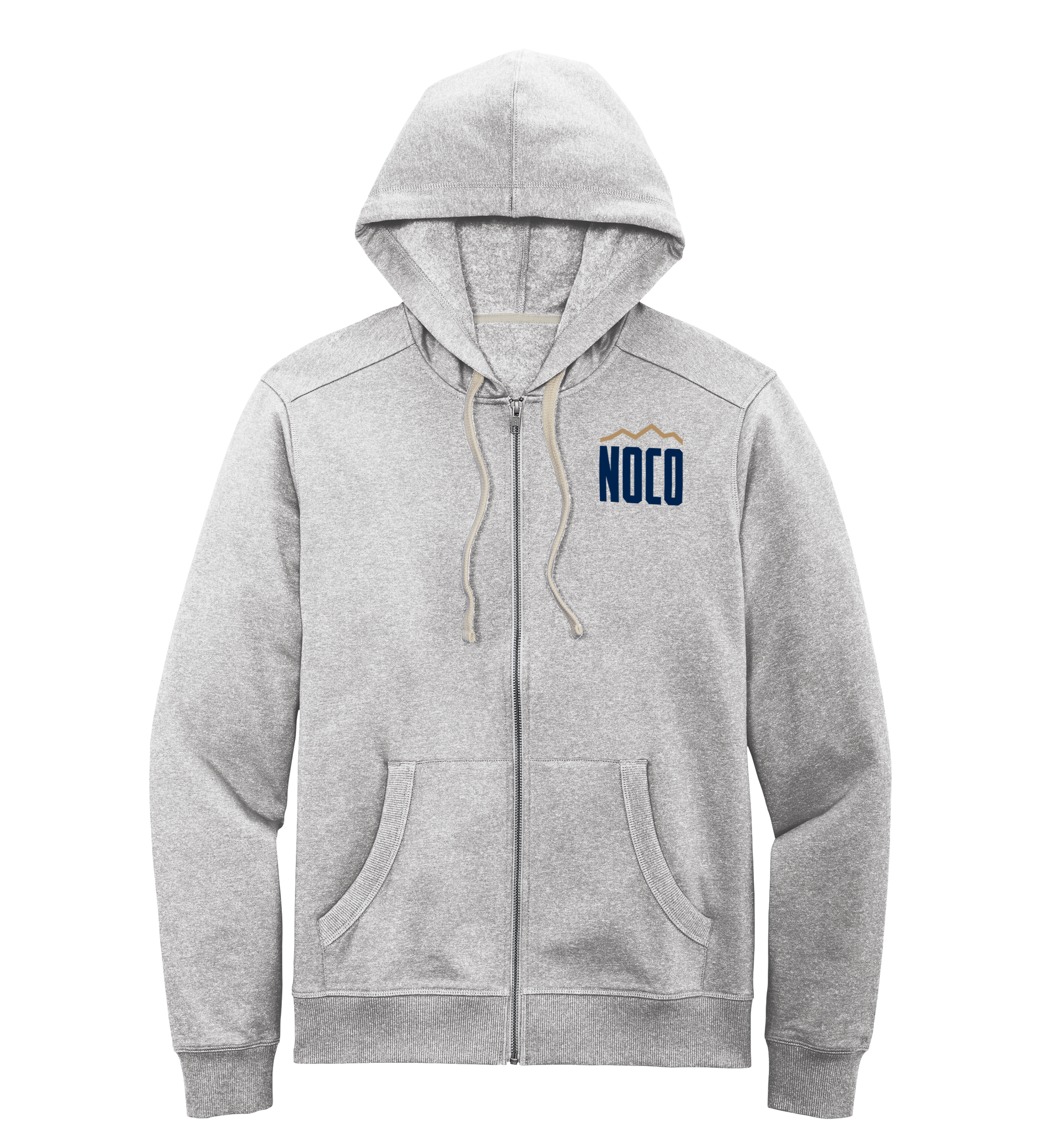 Grey zip up hoodie with NOCO print