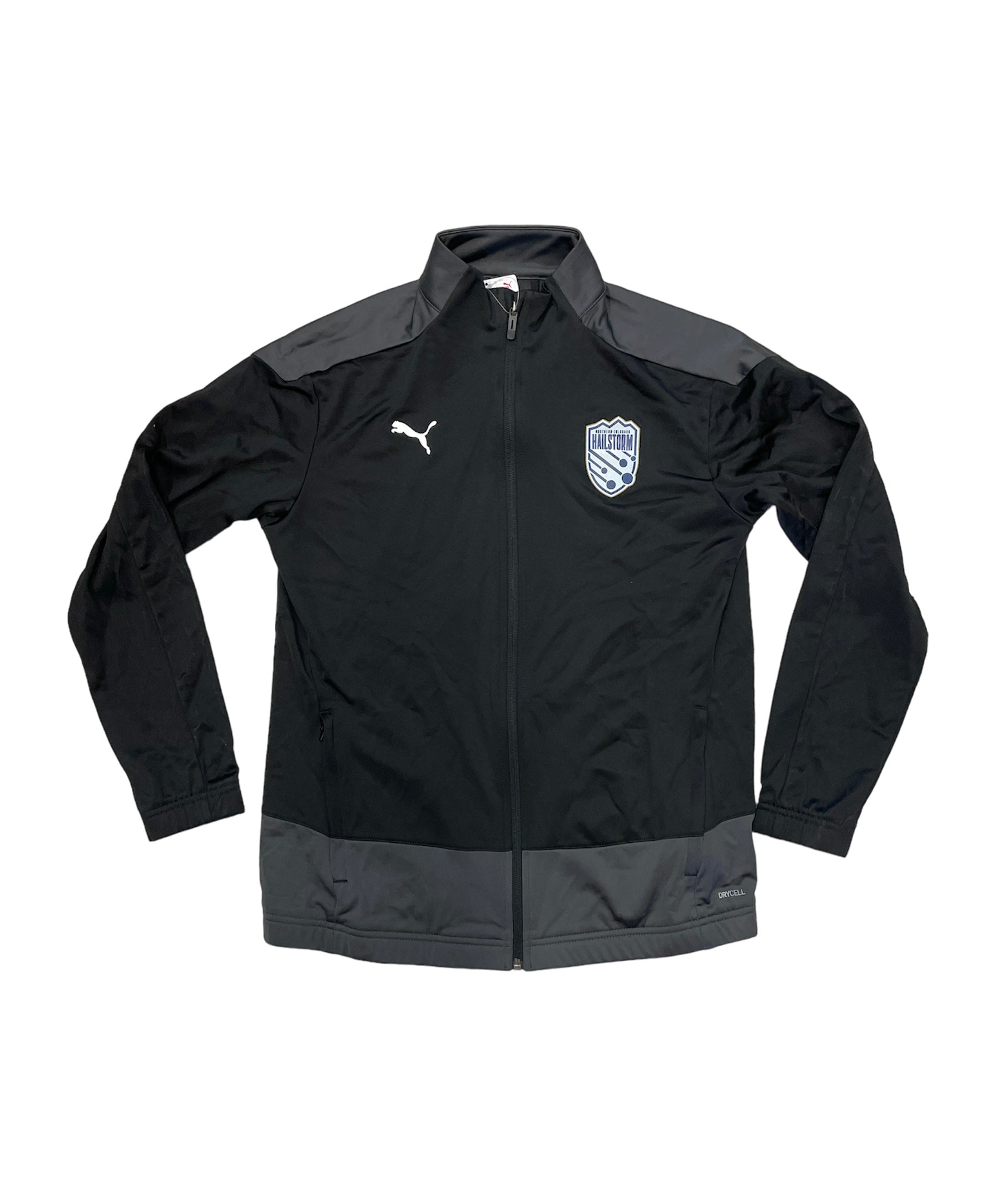 Puma women's black training jacket with Hailstorm crest