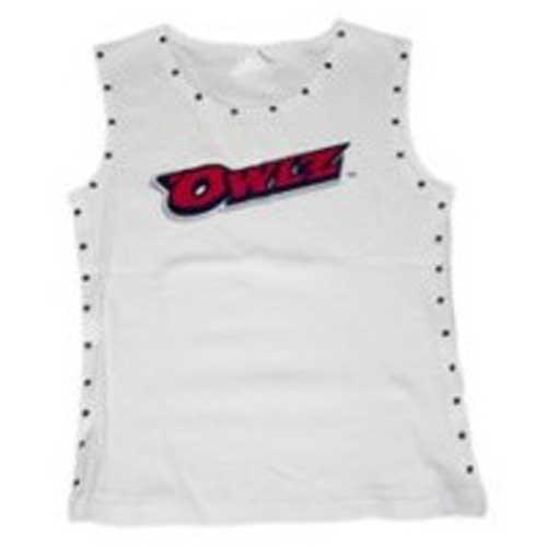 Beat the heat with this cute little number! Silver studs around neck line and sides complete the look. Owlz script or Eyez logo. 100% cotton.
