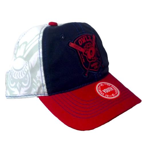 New youth hat for 2013! Adjustable for size. Features a denim look with red bill. Silhouette of the Owlz primary logo on the side.